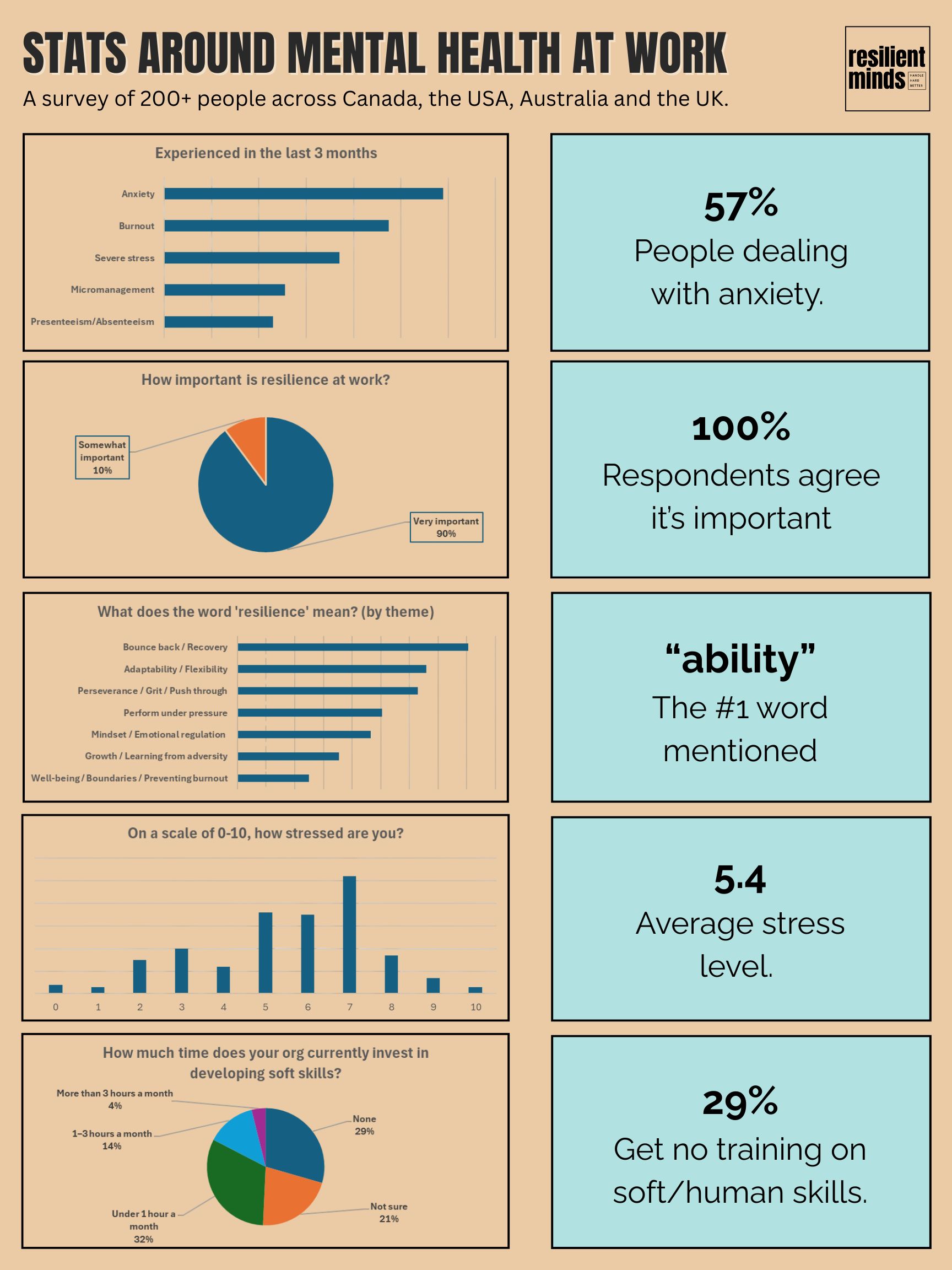 PS - I’ve included some sobering stats on the state of mental health at work below. Scroll down to see the infographic. With anxiety, stress and burnout on the rise, it’s a real challenge for many teams right now. If your team is in need of a reset and could use some valuable mindset and resilience tools, let’s connect to talk about a way forward.